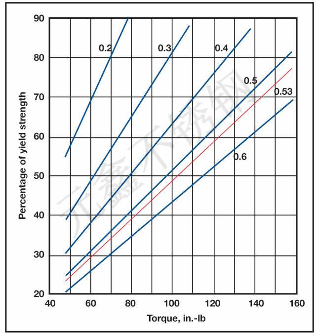 螺栓預(yù)緊力-扭矩圖:作為屈服強(qiáng)度百分比圖