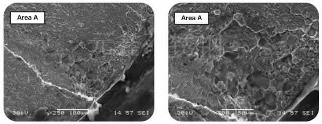 A區(qū)高倍形貌:裂紋萌生區(qū)形貌