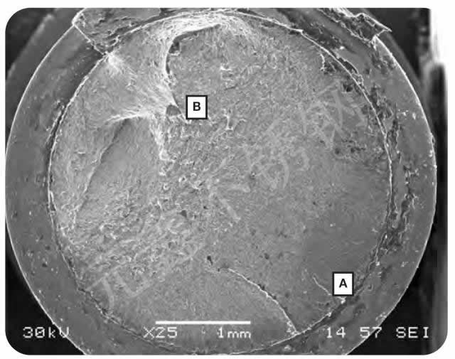 斷口分為A和B兩個(gè)區(qū)域,A區(qū)和B區(qū)