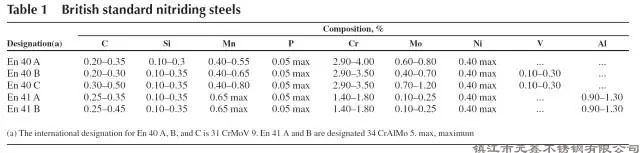 此后不久,在20世紀(jì)20年代末,一家位于英國(guó)謝菲爾德的公司也開始在克虜伯鋼鐵有限公司的指導(dǎo)下開發(fā)一組氮化鋼。這些鋼也以Nitralloy品牌名稱銷售。該公司是Thomas Firth和John Brown Steelworks,更常被稱為Firth布朗鋼。來自Firth Brown的鋼被稱為“LK”組,由英國(guó)標(biāo)準(zhǔn)970指定為En 40A,En 40B,En 40C,En 41A和En 41B。為氮化應(yīng)用開發(fā)的這些是鉻-鉬鋼(化學(xué)成分見表1)。