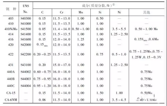 馬氏體不銹鋼標(biāo)準(zhǔn)合金種類:410不銹鋼、420不銹鋼和焊接材料