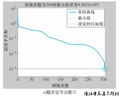 圖6-2 不同隱含層節(jié)點(diǎn)下的網(wǎng)絡(luò)訓(xùn)練誤差曲線