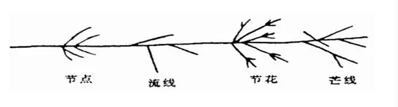 流線上明亮而又較粗的點稱為節(jié)點;鸹ㄔ诒褧r,產生的若干短線條稱為芒線。芒線所組成的火花稱為節(jié)花。