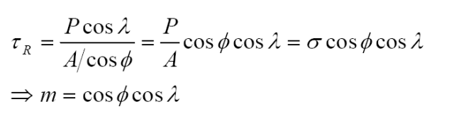 當(dāng)λ = ø =45 ْ時,剪應(yīng)力最大。如果兩個角度中的任何一個等于90 ْ,那剪應(yīng)力分量為零,因此將不會發(fā)生滑移。