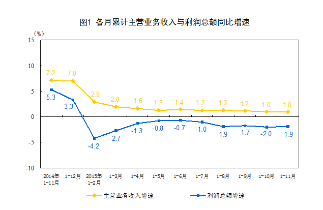 一是產(chǎn)品銷售由降轉(zhuǎn)升。11月份,規(guī)模以上工業(yè)企業(yè)主營業(yè)務(wù)收入同比增長1%,而10月份同比下降1.4%。
